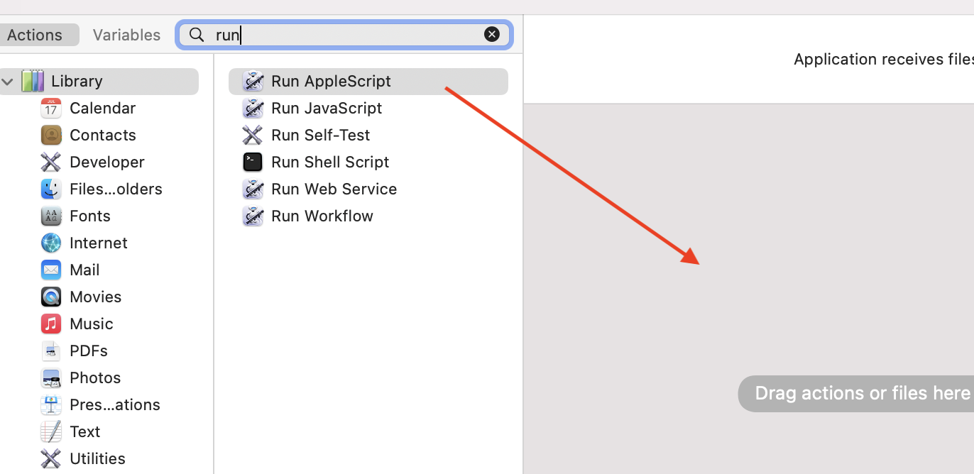 To add a quick button for it, we could use automator. 1, Open the “Automator” app, choose “New Document > Application”, choose “Run Apple Script”, and drag to the workflow window 2, In the Apple Script content, paste the code below: